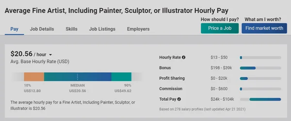 Salary of fine artist, painter, sculptor, & illustrator from Payscale.comWays To Get Paid To Draw Online